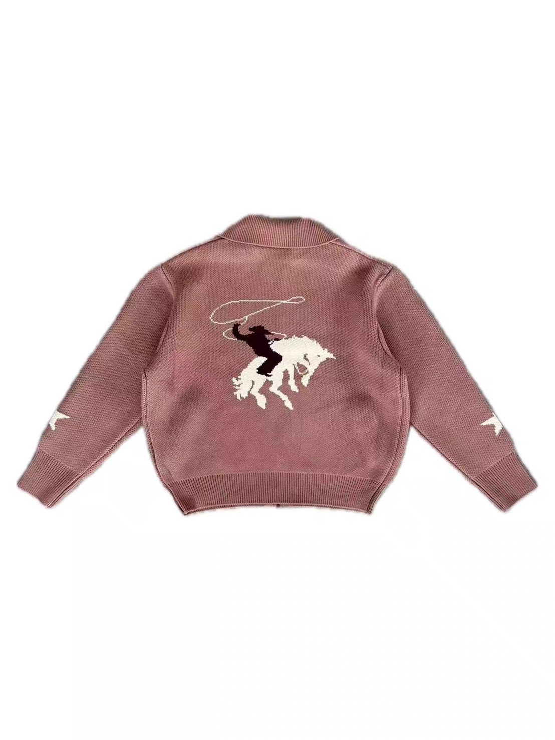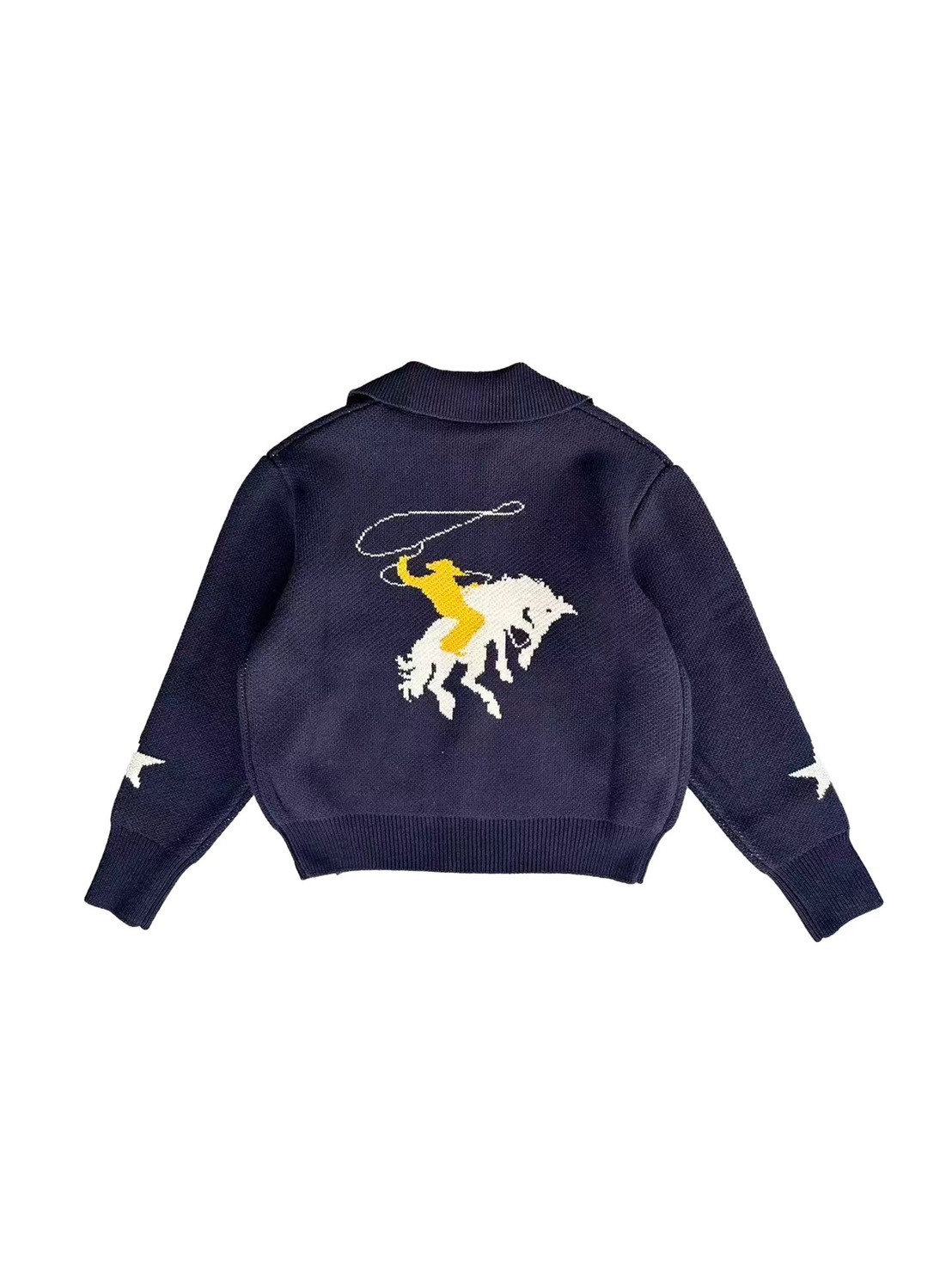 【GUBAN】 J-C57 牛仔 印花 羊毛 針織 拉鍊 翻領 拉鍊 外套