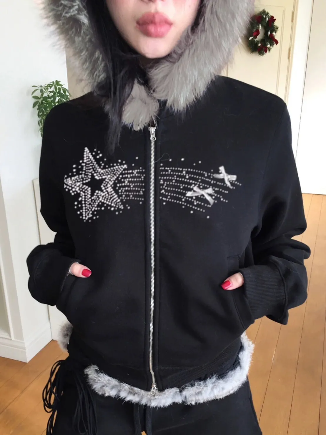 【GUBAN】J-K69 正韓復古辣妹Y2K毛領短款長袖連帽外套