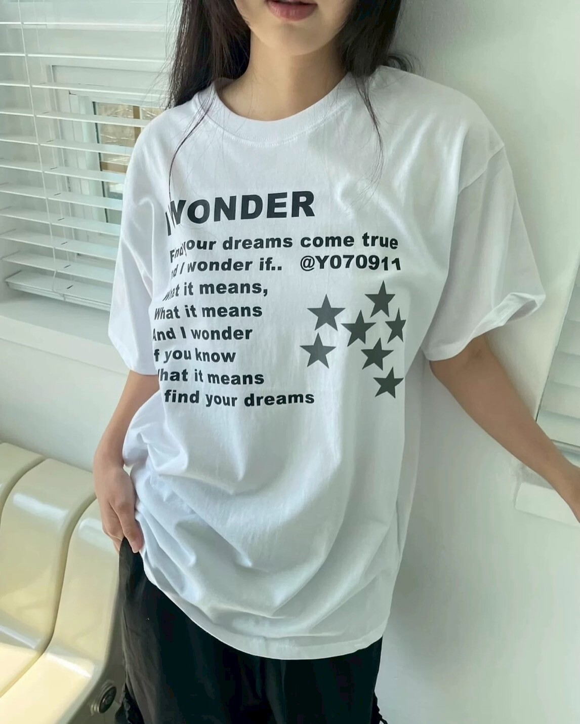 【GUBAN】T-S83 "AAKE" 星星 塗鴉 文字 寬鬆 短袖 上衣