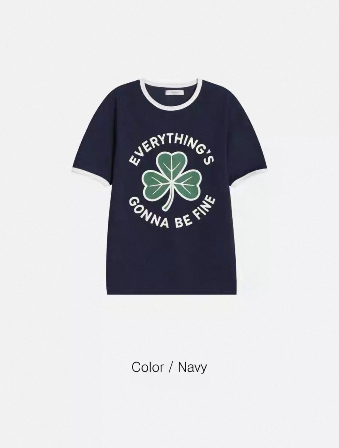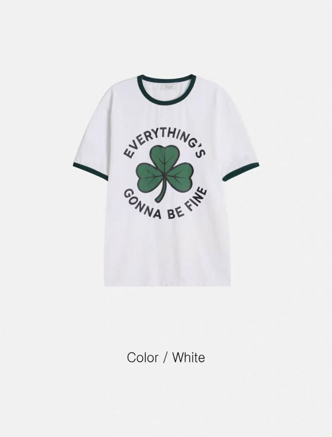 【GUBAN】T-L87 幸運草 滾邊 復古 寬鬆 短袖 上衣