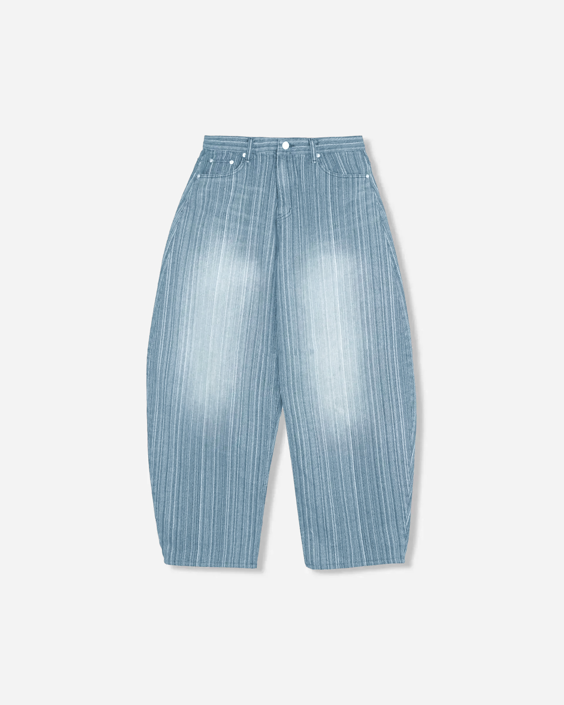 【GUBAN】PT- 2946 正韓 豎條紋裡刷色 街頭 闊腿 牛仔長褲