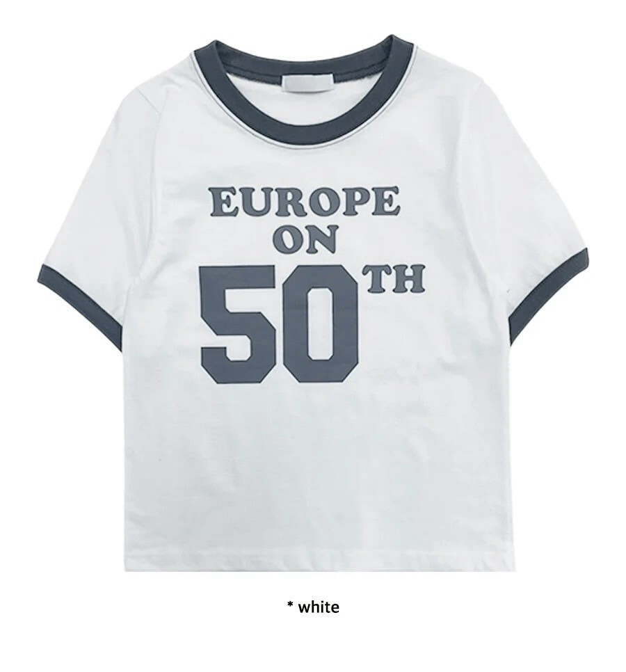 【GUBAN】T-E58 韓國 領口 撞色 地球 印花 寬鬆 短袖
