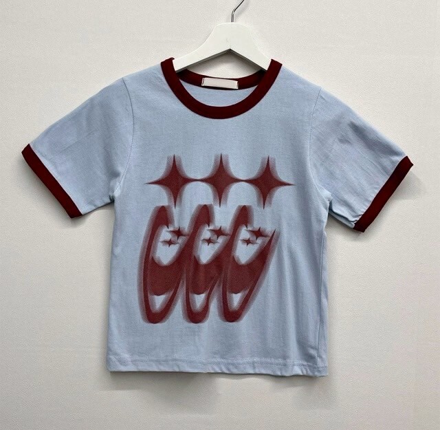 【GUBAN】T-E68 韓國 印花 重工 水洗 短袖 上衣