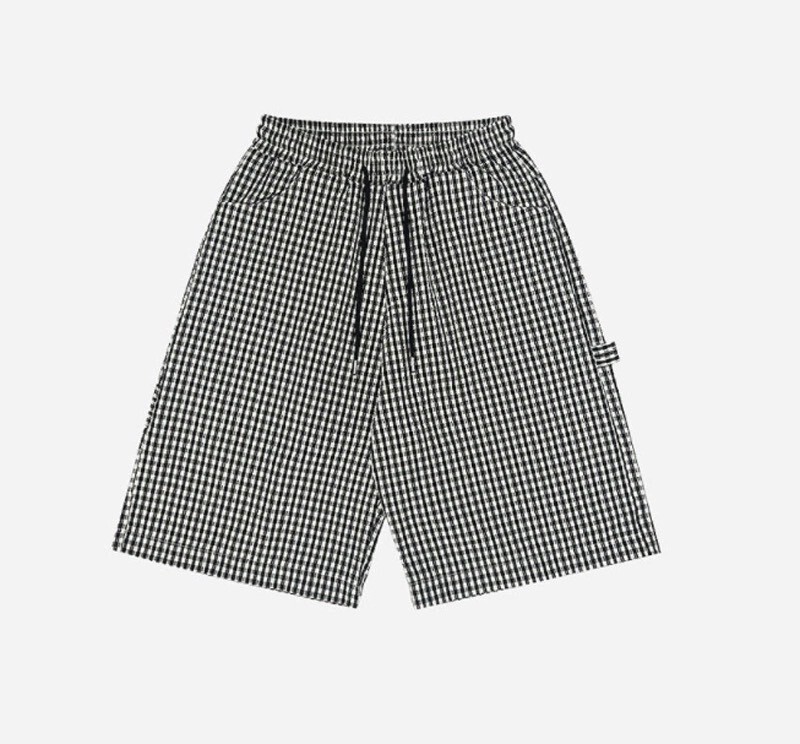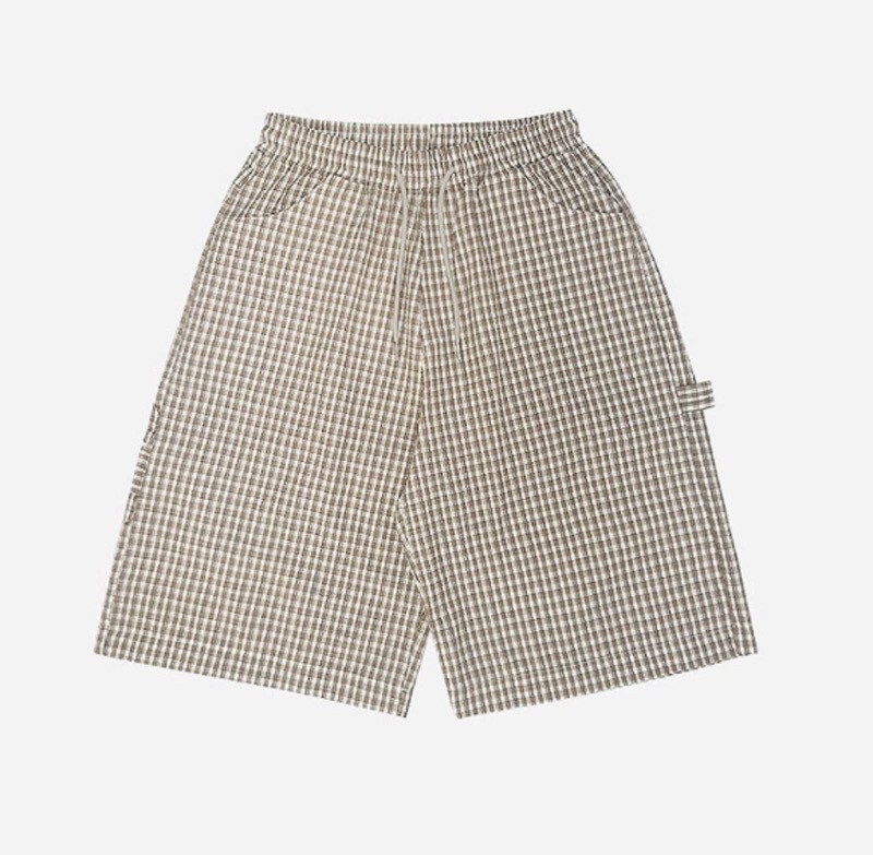 【GUBAN】P-S80 韓國 休閒 慵懶 小眾 格紋 復古 闊腿 五分 短褲