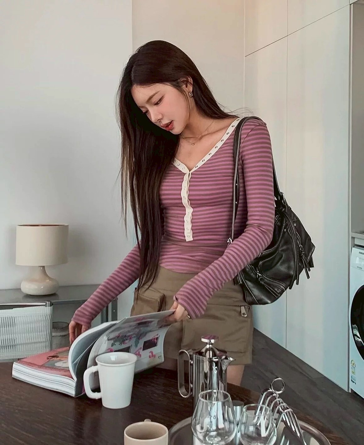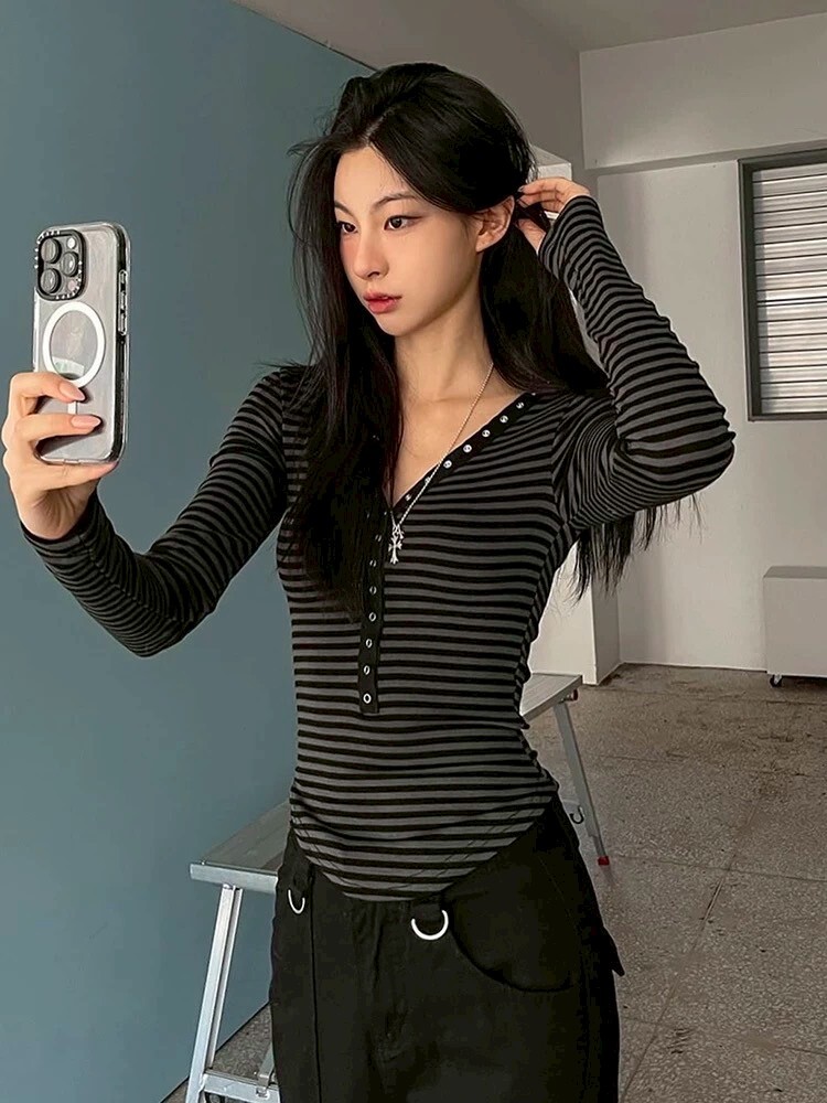 【GUBAN】T-W105 正韓 條文 單排扣 顯瘦 彈性 長袖