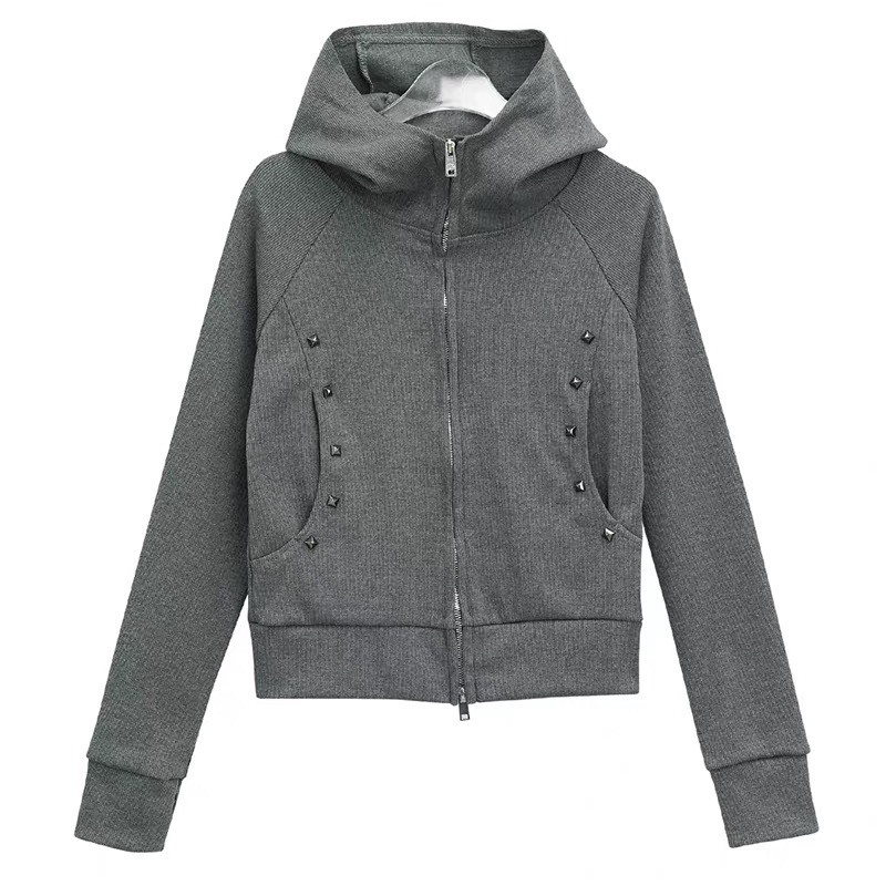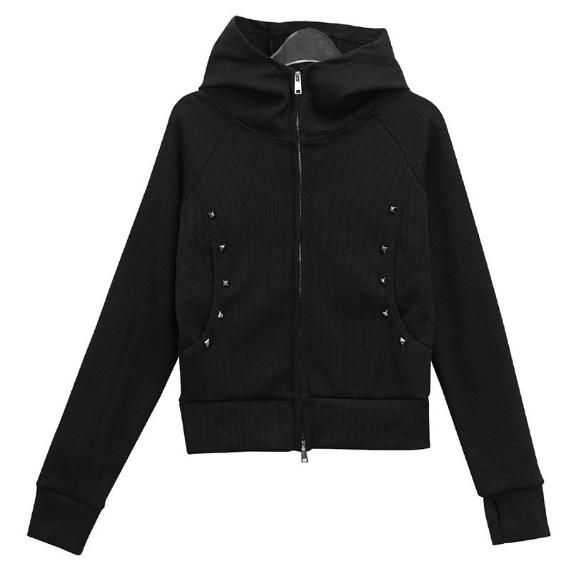 【GUBAN】J-M46 鉚釘 短版 修身 高領 連帽 外套