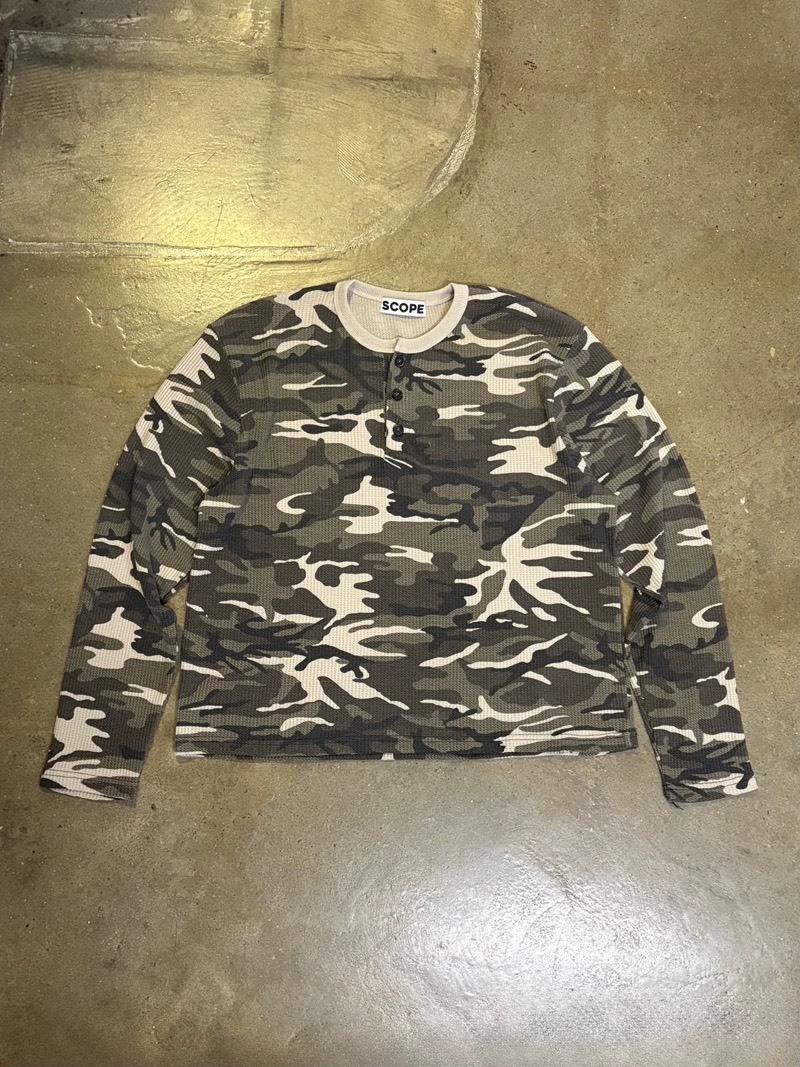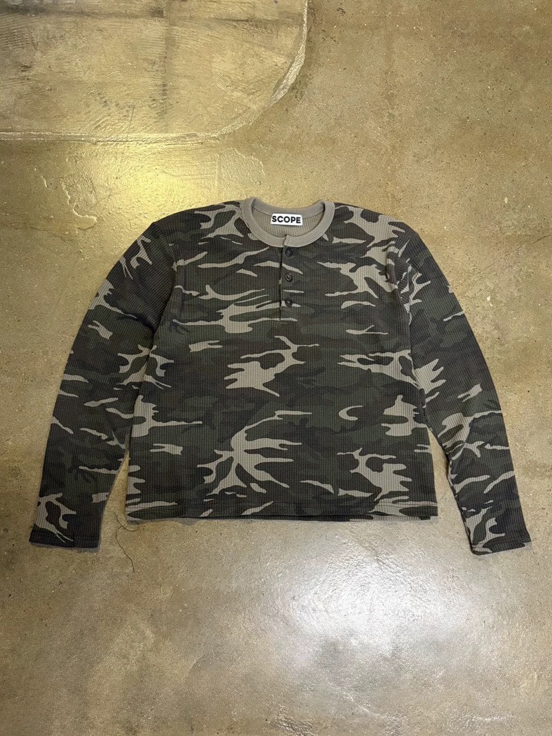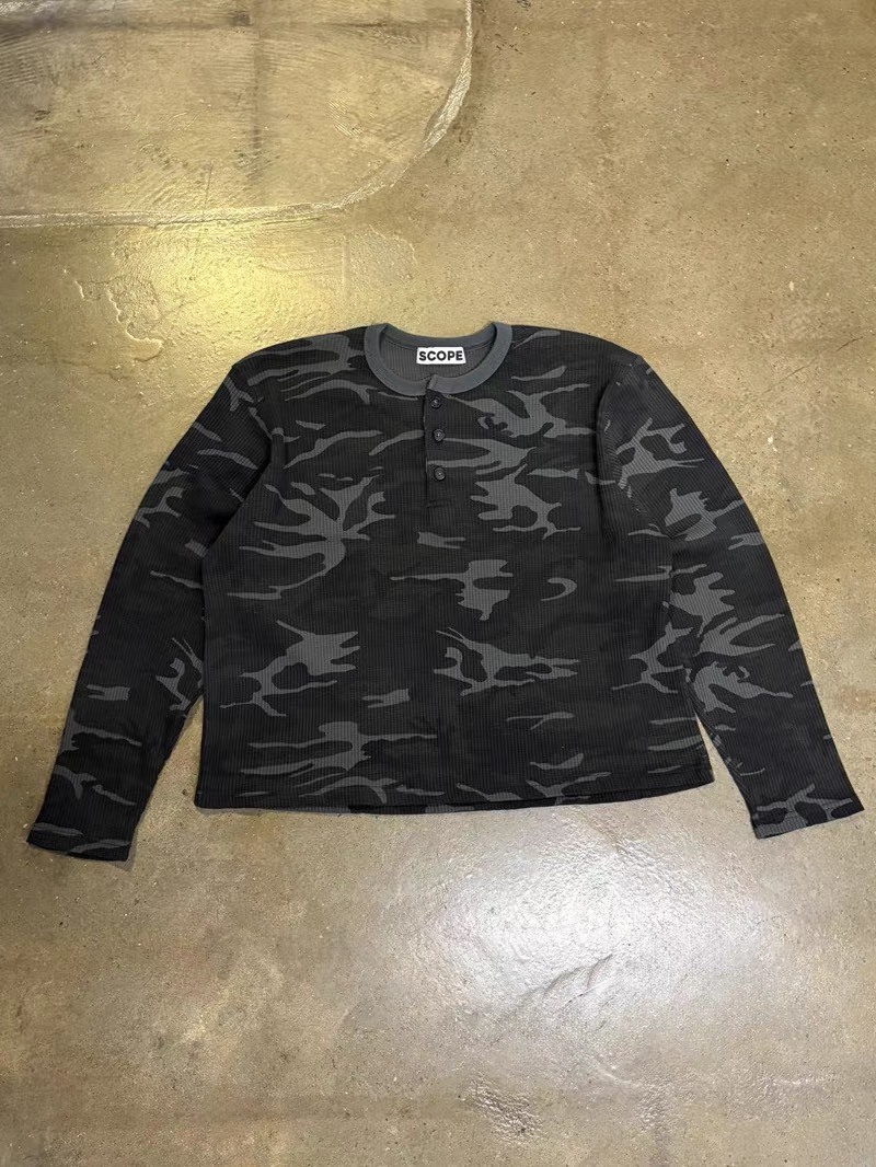 【GUBAN】T-C107 韓國 迷彩 華夫格 短版 亨利領 長袖 上衣